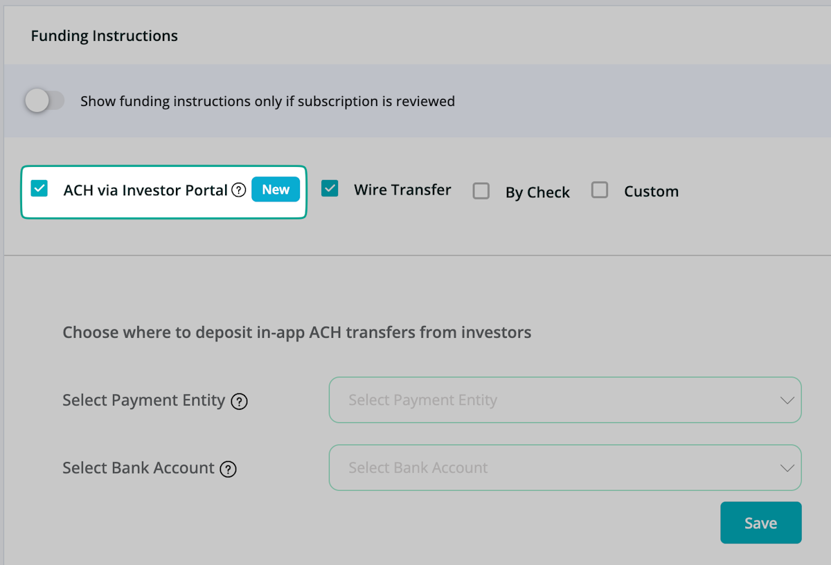 Note: ACH payments provide a convenient and user-friendly way for investors to contribute to your deal. They can securely submit their bank account information and complete transactions electronically, eliminating the hassle of paper checks or wire transfers.